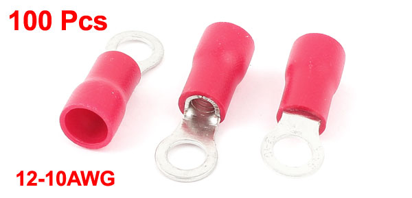 100 Pcs 5.5-5S Insulated Wire Connector Ring Crimp Terminal Red 12-10AWG