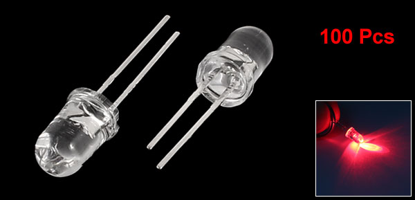 100 Pcs 5mm Round Clear Head Red LED Light Emitting Diode