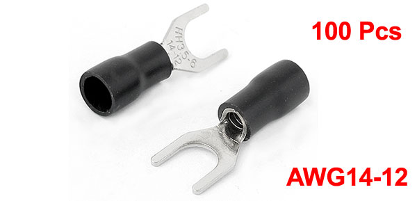 100 Pcs 6.5mm Bolt Diameter Furcate Pre Insulated Fork Terminal AWG14-12