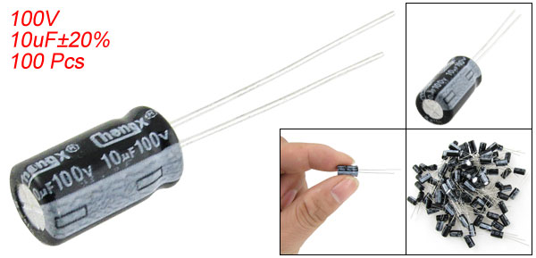 100 Pcs 6.3mmx11mm 100V 10uF Aluminum Electrolytic Capacitors