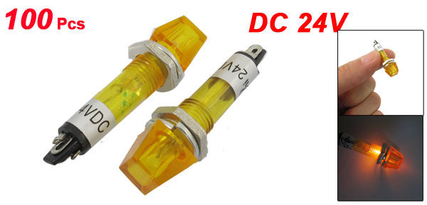 100 Pcs 6.5mm Hole 2 Pins DC 24V Orange Pilot Light Signal Indicator Lamp