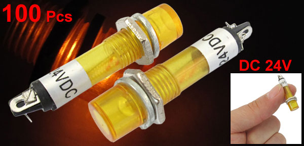 100 Pcs 6.5mm Hole 2 Pins DC 24V Yellow Pilot Light Signal Indicator Lamp