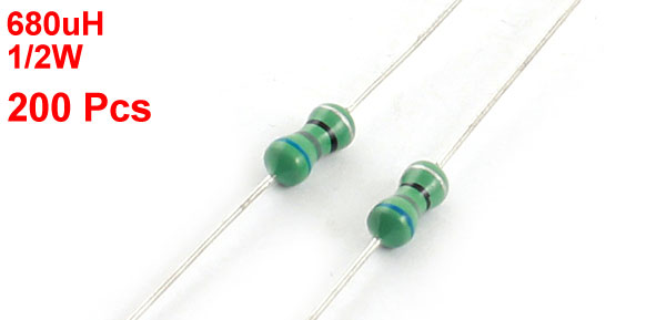 100 Pcs 680uH 1/2W 10% Tolerance Axial Color Ring Inductors 4x10mm