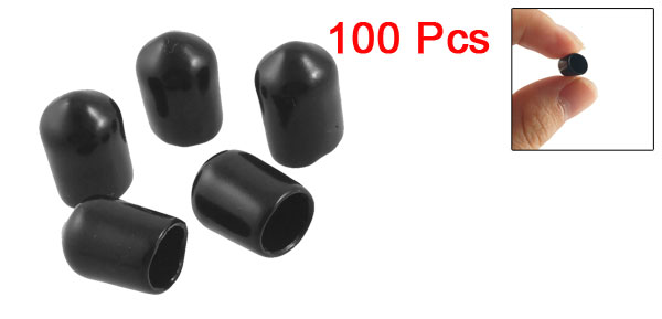 100 Pcs 6mm Inner Dia Round Tip Black PVC Insulated End Caps
