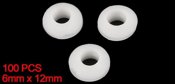 100 PCS 6mm x 12mm White Rubber Cable Wiring Grommets Gasket Ring