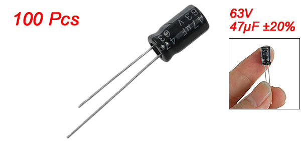 100 Pcs 6x11mm 47uF 63V 105C Polarized Electrolytic Capacitors