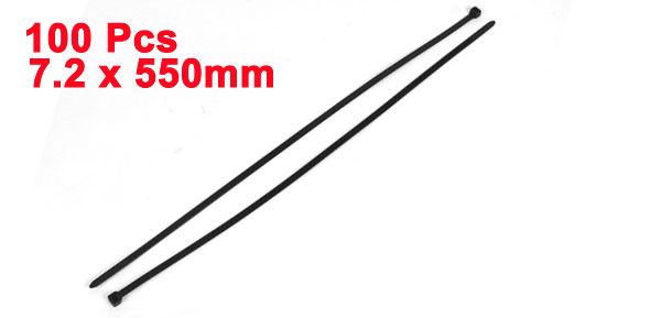 100 Pcs 7.2mm Width 550mm Long Black Packaging String Zip Tie for Cable Wire