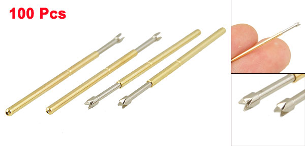 Product Name Test Probe Model No. 9100V Quantity 100 ± 2% Pcs Tip Type 4-Point Crown Tip Dia(Approx) 1.5mm/ 0.059" Barrel Size(Approx) 1.4 x 25mm/ 0.055" x 0.98"(D*L) Overall Length(Approx) 34mm/ 1.34" Material Metal Color Gold Tone, Silver Tone Net Weigth 23g Package Content 100 Pcs x Test Probe - Reviews