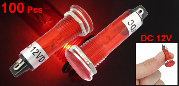 100 Pcs 9.5mm Hole 2 Pins DC 12V Red Illuminated Pilot Signal Indicator Lamp
