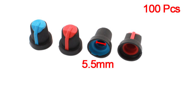 100 Pcs Black Blue Red Plastic 5.5mm Hole Rotary Taper Potentiometer Pot