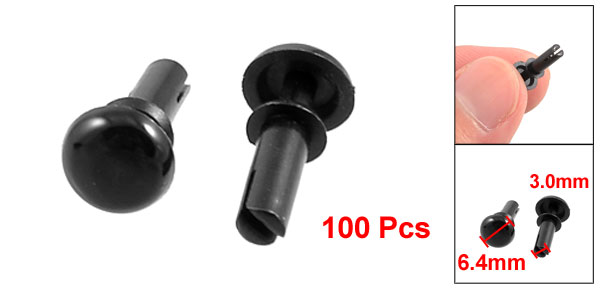 100 Pcs Black Nylon 3.0mm Bottom Dia Push Clips Rivets Fasteners R3080
