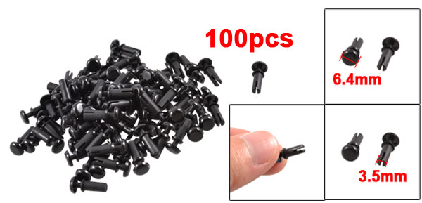 100 Pcs Black Nylon 3.5mm Bottom Dia Push Clips Rivets Fasteners R3588