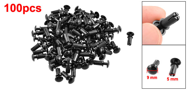 100 Pcs Black Nylon 5.0mm Bottom Dia Push Clips Rivets Fasteners R5105