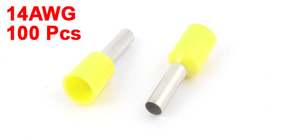100 Pcs Cord End Terminal Insulated Bootlace Ferrule Yellow E2508 14AWG 2.5mm2