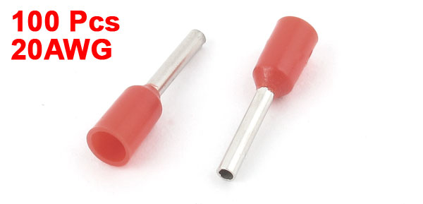 Details100 Pcs Crimp Cord End Terminal Pre Insulated Ferrule Red E7508 20AWG 0.75mm2  Product Name Insulated Ferrule Model E7508 Design Tube Type Material Plastic, Tin Plated Copper Color Silver Tone, Red Fit Wire Gauge 20AWG 0.75mm2 Copper Tube Size 1.2 x 1.5 x 8mm / 0.05" x 0.06" x 0.3" (Inner Dia*OD*L) Plastic Part Size 2.8 x 3.6 x 6.3mm / 0.11" x 0.14" x 0.25" (Inner Dia*OD*L) Total Length 14.3mm / 0.56" Net Weight 10g Package Content 100 Pcs (+/-2%) x Insulated Ferrules