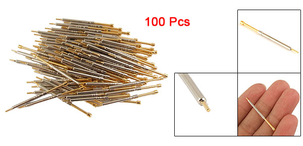Product Name Test Probe Model No. CSP-3H Material Metal Quantity 100 Pcs (± 2%) Tip Type Serrated Tip Dia(Approx) 2mm/0.07" Overall Length(Each) 36mm/1.4" Color Gold Tone, Silver Tone Net Weigth 48g Package Content 100 Pcs x Test Probe - Reviews