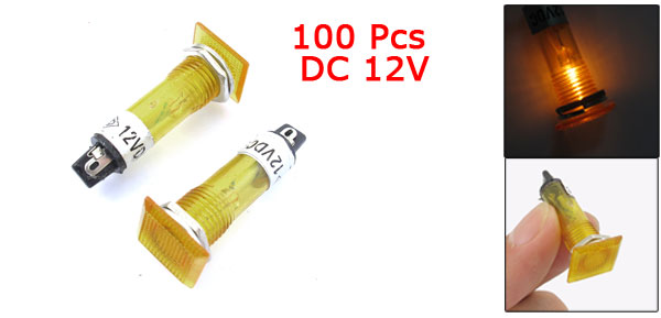 100 Pcs DC 12V 10mm Holing Recessed Yellow Signal Indicator Pilot Light Lamp