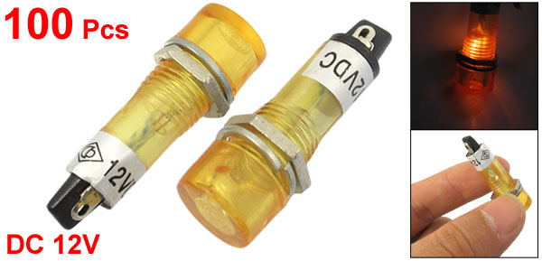 100 Pcs DC 12V 10mm Holing Yellow Illuminated Signal Indicator Light Pilot Lamp