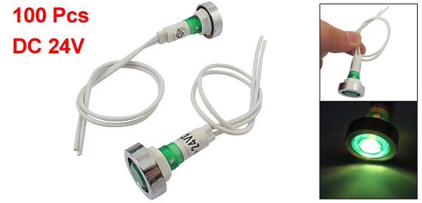 100 Pcs DC 24V 10mm Green Bulb Round Cover Signal Lamp Indicator Light Pilot
