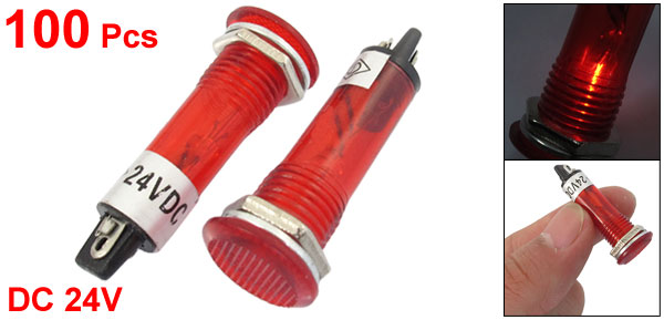100 Pcs DC 24V 10mm Holing Red Illuminated Signal Indicator Pilot Lamp XD10-1