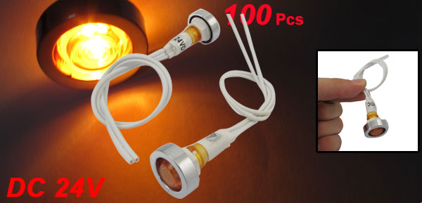 100 Pcs DC 24V Yellow Bulb Illuminated Signal Lamp Indicator Light w Shell