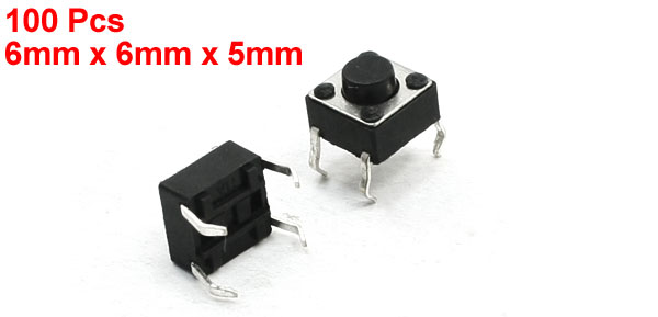 100 Pcs DIP Through Hole Mount 4 Pin Momentary Tactile Tact Switch 6x6x5mm