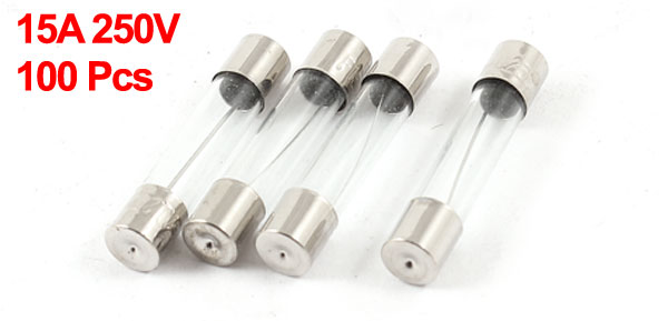100 Pcs Electric Equipment Parts 5mm x 20mm Glass Tube Fuses 15A 250V