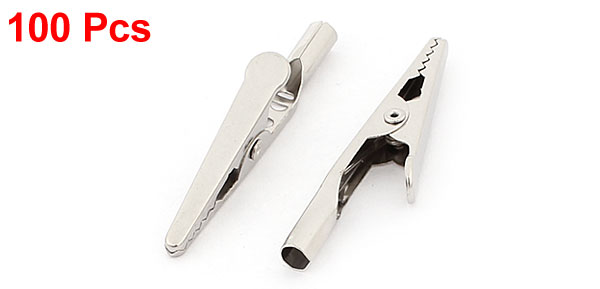 100 Pcs Electric Test Crocodile Alligator Clips Clamps Silver Tone