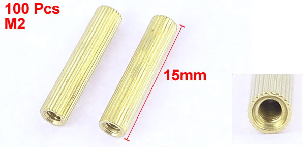100 Pcs Female Threaded Pillars Brass Standoff Spacer Gold Tone M2x15mm