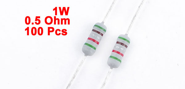 Product Name Carbon Film Resistor Lead Type Axial Power Rating 1W Resistance Tolerance ± 5 Percentage Resistance 0.5 Ohm Total Size (Approx) 8 x 0.4cm / 3.2" x 0.16" (L*D) Main Color Gray Weight 78g Package Content 100(±2%) Pcs x Carbon Film Resistors - Reviews