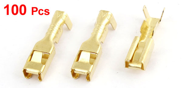 100 Pcs Gold Tone 3mm Wide Female Spade Crimp Terminal Connectors