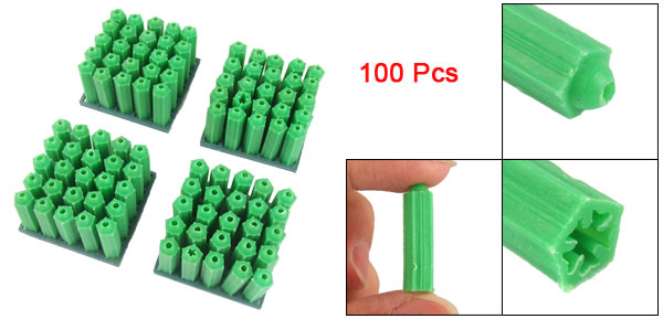 100 Pcs Green 8mm Plastic Screw Fixing Wall Plugs Tool