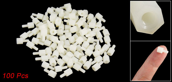 100 Pcs Hex Threaded Spacer Offwhite Plastic Standoff