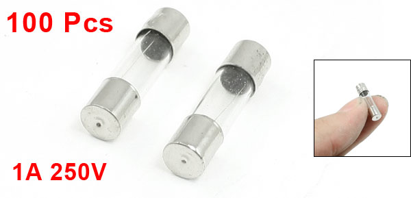 Product Name Glass Tube Fuses Quantity 100±2% Pcs Features Fast Blow(F) Low Breaking Capacity(L) Rated Voltage 250V Rated Current 1A Dimension 5 x 20mm/ 0.2" x 0.8" (D*L) Material Glass Color Clear, Silver Tone Weight 63g Package 100 x Glass Tube Fuses - Reviews