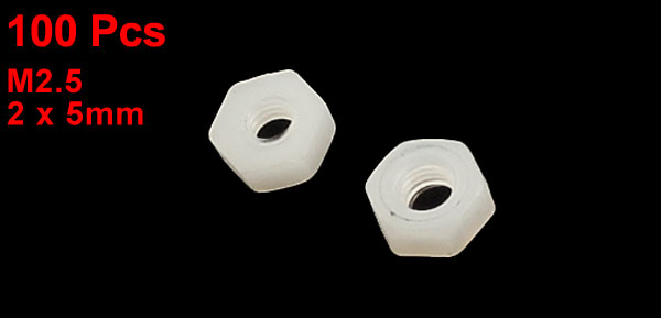 100 PCS M2.5 Female Thread Nylon Hex Nut Threaded Spacer Support for PCB Board