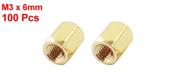 100 Pcs M3 x 6mm Female Thread Dual Ends Brass Standoff Hexagonal Spacer