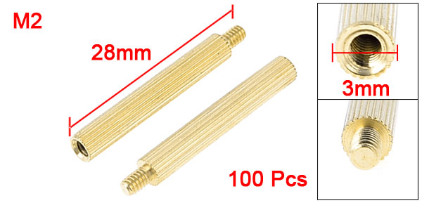100 Pcs Male Female PCB Thread Brass Pillars Standoff Spacers M2x25mmx28mm