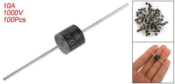 Product Name Rectifier Diode Model 10A10 IF 10A VRRM 1000V VRMS 700V VDC 1000V Lead Diameter 1.2mm / 0.047" Total Dimension 9 x 61mm/ 0.35" x 2.4" (D*L) Color Black, Silver Tone Net Weight 190g Package Content 100(±2%) x Rectifier Diodes - Reviews