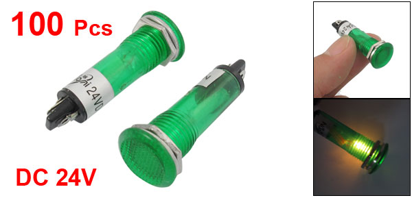 100 Pcs Recessed Green Pilot Light Signal Indicator Lamp DC 24V 10mm XD10-1