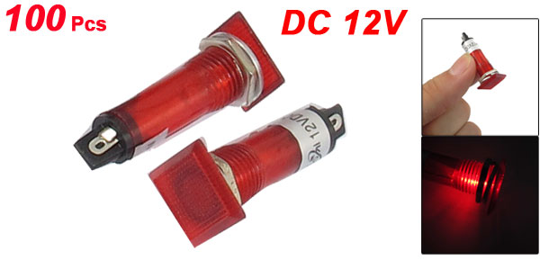 100 Pcs Recessed Red Power Signal Indicator Pilot Light Lamp DC 12V 10mm XD10-2