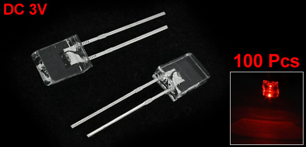 100 PCS Rectangular Head 2 Pin Red LED Light Emitting Diodes DC 3V