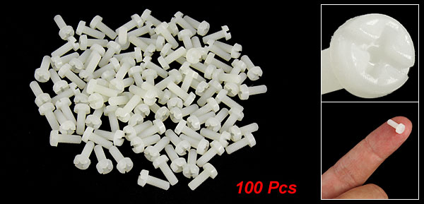 Product Name Screw Tpye Round Cross Head Quantity 100±2% Pcs Thread Length 8mm/ 0.31" Thread Dia. 3mm / 0.12" Overall Size 10 x 5mm/ 0.39" x 0.2" (L*D) Material Plastic Color Off-white Net Weight 9g Package Content 100 x Cross Head Screw - Reviews