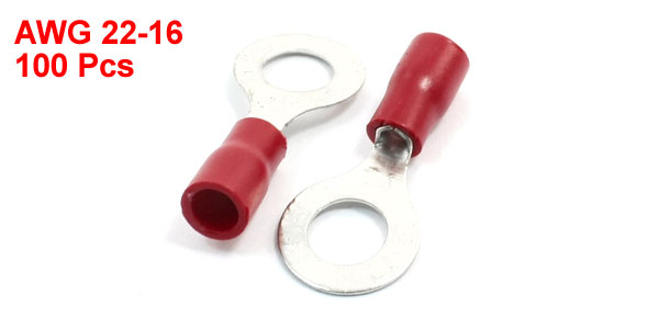 100 Pcs RV1.25-6 Pre-Insulate Ring Terminals Wire Connectors for AWG 22-16 Cable