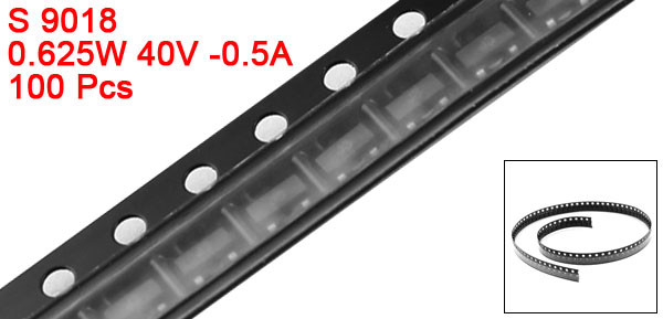 Product Name SMD Transistor Model S 9018 Capsulation / Package SOT-23 Pin Number 3 Pin Collector-Base Voltage Vcbo 40V Collector Current -Continuous Ic -0.5A Collector Power Dissipation Pc 0.625W Color Black Weight 4g Package Content 100 in 1 x SMD Transistor - Reviews