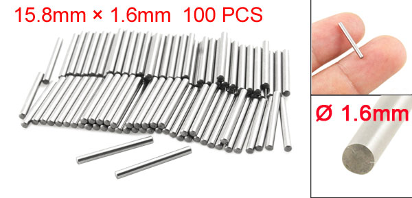 Product Name Dowel Pins Material Stainless Steel Diameter 1.6mm / 0.063" Length 15.8mm / 0.622" Color Silver Tone Weight 25g Pacakge Content 100(±2%) x Dowel Pins - Reviews