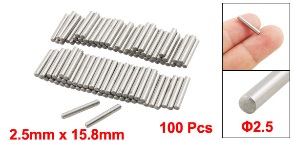 Product Name Dowel Pins Material Stainless Steel Diameter 2.5mm / 0.098" Length 15.8mm / 0.622" Color Silver Tone Weight 60g Pacakge Content 100(±2%) x Dowel Pins - Reviews