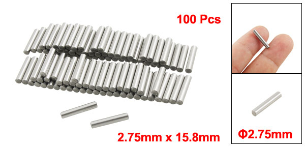 Product Name Dowel Pins Material Stainless Steel Diameter 2.75mm / 0.108" Length 15.8mm / 0.622" Color Silver Tone Weight 70g Pacakge Content 100(±2%) x Dowel Pins - Reviews