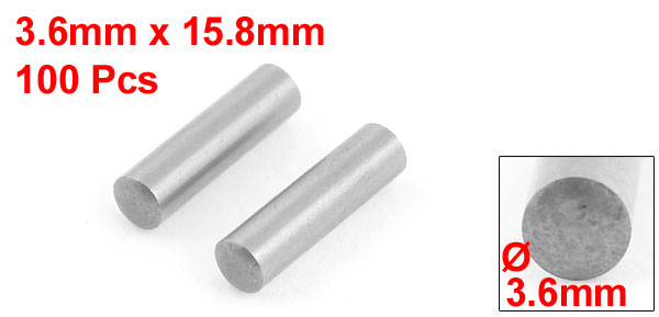 Product Name Dowel Pins Material Stainless Steel Diameter 3.6mm / 0.14" Length 15.8mm / 0.622" Color Silver Tone Weight 103g Pacakge Content 100 Pcs (±2%) x Dowel Pins - Reviews