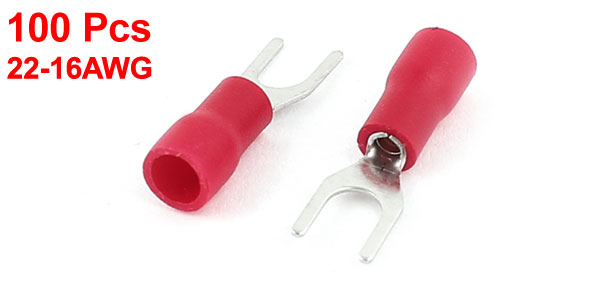 100 Pcs SV-1.25/4S 22-16AWG Insulated Fork Spade Terminals Electrical Connector
