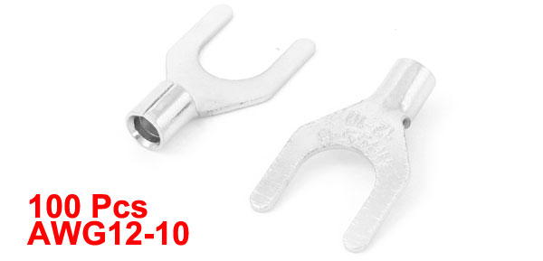 100 Pcs TU Type 8.4mm Bolt Furcate AWG12-10 Non Insulated Terminals